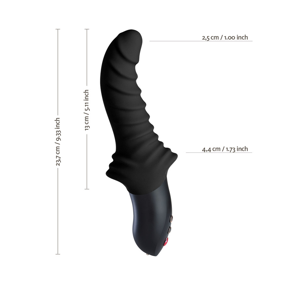 Nun ist der Stronic G nicht nur einfach ein Pulsator. Nein, nein. Fun Factory gibt wie immer alles. Er ist Weltweit der einzige Pulsator der auf den G-Punkt spezialisiert ist. Was will man mehr? Um den Stronic G einzuschalten, drückt ihr den Plusknopf bis die FUN-Taste aufleuchtet. Ein Ton erklingt und ihr habt die Reisesicherung gelöst. Jetzt kann der Spaß losgehen. Durch erneutes drücken der FUN-Taste beginnt der Pulsator sich in Bewegung zu setzten. um die Geschwindigkeit des Stoßes zu erhöhen, müsst ihr einfach nur die Taste (+) drücken. Wenn ihr erst mal die höchste Einstellung erreicht haben, beginnen die Rhythmen. Wenn die Einstellung euch zu wild wird, könnt ihr sie durch das Drücken der Taste (-) einfach verringern. Um den Pulsator eine Pause zu gönnen, drückt ihr lediglich erneut die FUN-Taste. Das spannende hierbei ist, dass der Pulsator sich euer präferiertes bzw. zuletzt gewähltes Programm merkt und bei erneutem Einschalten wieder damit loslegt. Also müsst ihr nicht jedes Mal durch alles durchklicken und könnt direkt in eurer Lieblingsstufe oder Rhythmus starten. Insgesamt bietet der Stronic G ganze 7 Intensitätseinstellungen und drei gemusterten Rhythmen. Für meinen Geschmack völlig ausreichend. Das Luder kann wirklich schnelle Stöße von sich geben. Durch das induktive Aufladen gibt es auch keine störenden Stecklöcher, die versteckt werden müssten. Unten am Griff befindet sich die Andock Station. Dort stört sie nicht, fällt ohnehin kaum auf. So macht man sich auch keine Gedanken darüber, dass Waser in den Pulsator laufen könnte.