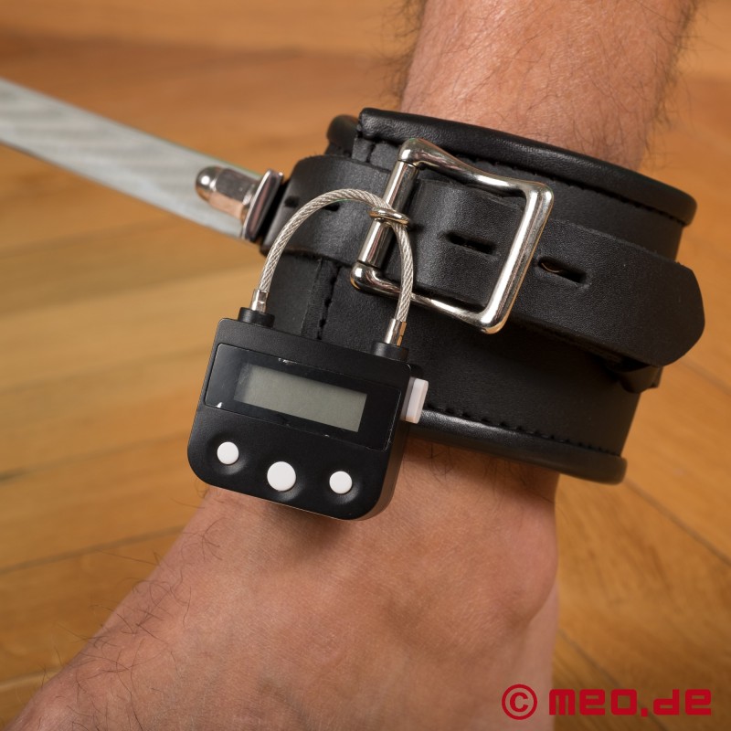 Wie zuvor erwähnt besteht die Spreizstange aus solidem Edelstahl und ist daher ein kühles Material, was hierbei nicht stört. Sie hält alles stabil und fest. Sie ist auch recht leicht, da sie innen hohl ist und auf unnötige Verzierungen oder Verschraubungen verzichtet wurde. Die Manschetten sitzen in ihrer Halterung an den Enden recht fest, was sie etwas unflexibler macht. Dennoch sind sie sehr gut und weich gepolstert, lassen sich individuell einstellen und haben eine große Besonderheit. Bei dem typischen Schnallenverschluss hat man die Möglichkeit, die Fesseln abzuschließen hierfür kann ein normales Vorhängeschloss genutzt werden oder das digitale Selfbondage Zeitschloss MEOBOND. Dieses dient dazu, sich erst nach einer bestimmten, vorher eingestellten Zeit, zu öffnen (maximal 1000 Stunden). Ein sehr interessantes Schloss, bei dem man aber sich selbst oder den Partner gut einschätzen sollte. Die Fesseln lassen sich gut justieren uns sitzen sowohl an Hand- und Fußgelenken sehr angenehm. Meine Spreizstange ist 75 cm lang und lässt sich für beide Fesselungen gut benutzen. Der Abstand ist recht angenehm. Bei den Armen lässt es sich gut tragen und bei den Beinen kann es je nach Benutzung sehr anstrengend werden, was ja aber auch nicht unbedingt etwas Schlechtes sein muss. MEO gibt zwar keine Belastungstoleranz an, was bei der Spreizstange aber keines Wegs nötig ist. Sie ist offensichtlich so designet, dass man sie nicht zum Aufhängen benutzen sollte. Die Qualität ist wirklich angemessen für das Produkt. Alle Nieten sind fest, es gibt keine Schweißnähte, die unter Belastung überstrapaziert werden könnten und die Schrauben lassen sich nicht ohne weiteres verstellen oder ähnliches. Allgemein gesagt ist die Spreizstange eine wirklich runde Sache, da nirgendwo eine Gefahr bzw. ein Verletzungsrisiko besteht. Was mir zusätzlich gut gefällt, ist das sie nicht lackiert ist. Man hat den normalen Metalllook, welcher nicht extra schwarz überzogen wurde. Es reicht aus, dass die fesseln aus schwarzem Leder bestehen. So kann nichts abplatzen, es entstehen nicht so schnell kleine Kratzer und ihr hübscher Anblick bleibt bewahrt, auch nach mehrfacher Benutzung. Zumal ich die Option schön finde, es nicht nur bei der Spreizstange zu belassen. Durch die kleinen Metallringe an den Fesseln kann man beispielsweise von unten nach oben noch mit Bondageseilen arbeiten und den Anblick des gefesselten Partners noch verfeinern. Die Manschetten selbst lassen sich bis zu ca. 14 cm verstellen, was meinem Erachten nach völlig ausreicht. So sind sie weder zu eng, noch zu locker und können sowohl an die Fuß- oder Hangelenke angepasst werden. Eine Befreiung, wenn man erst mal gefesselt ist, ist hierbei ohne Hilfe nicht so einfach möglich. Also erfüllt sie ihren Zweck vollkommen.