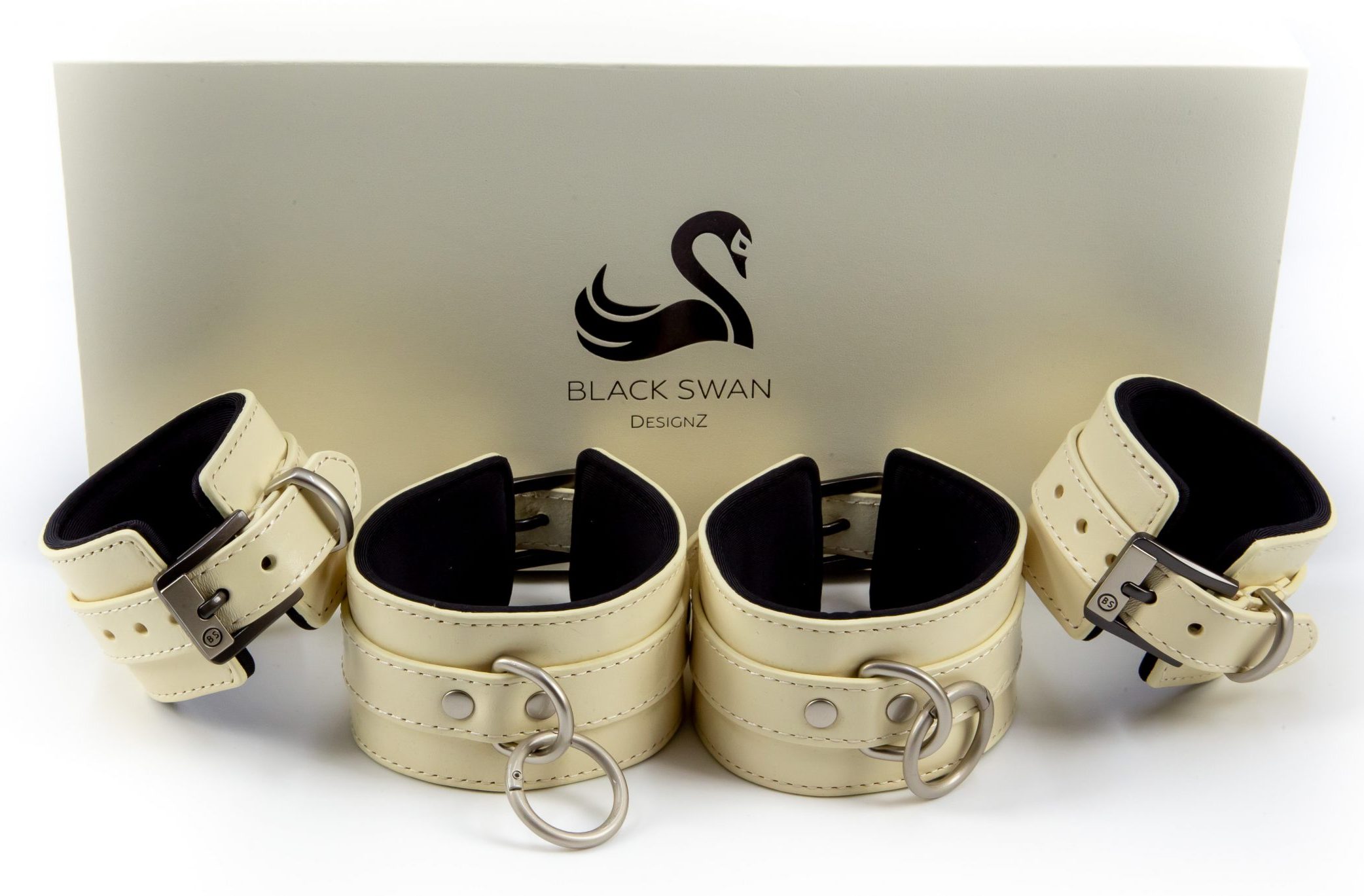 Fesseln ist schick. Das macht Black Swan Designz mit ihrer neuen Fessel-Kollektion sehr deutlich. Die in weißem Echt-Leder gehaltenen Fesseln für alle Körperbereiche, nämlich Hand- und Fußgelenke, sowie Oberschenkel und Hals, überzeugen durch Passgenauigkeit und geschmackvollen Stil. Ich durfte sie und ihr Konzept auf der Venus 2018 kennenlernen. Bald könnt ihr unter meinen Partner mehr über ihren Werdegang erfahren. Zunächst möchte ich aber über die allgemeinen Beschaffenheit der Produkte reden und anschließend mich mit ihnen einzeln Befassen.