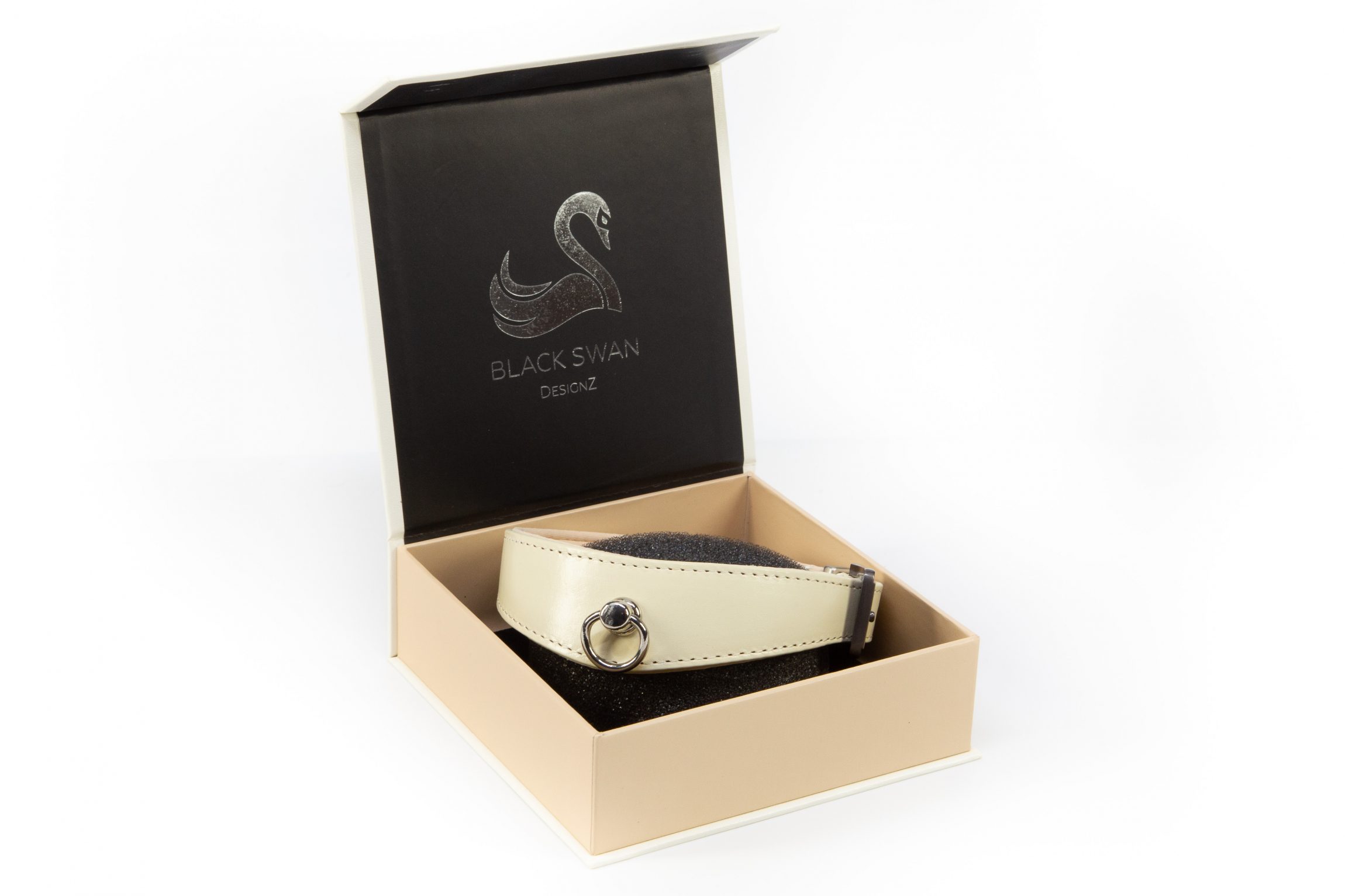 Egal was ich von Black Swan Designz kauft, kommt in einer wunderschönen Verpackung an. Jede Verpackung kommt in einem sanften Cremeweiß an und hat an den Seiten die Farbe des inneren Bezugs der Fesseln. Oben ist das Logo imprägniert und rundet den schlichten aber doch sehr edlen Look ab. In dem schönen Karton befinden sich dann die Produkte in passgenauem Schaumstoffbett, sodass man sie dort immer wieder verstauen kann. Es ist also nicht nur schöne Ware, die ankommt, sondern auch gleich noch eine hübsche Aufbewahrungsmöglichkeit.
