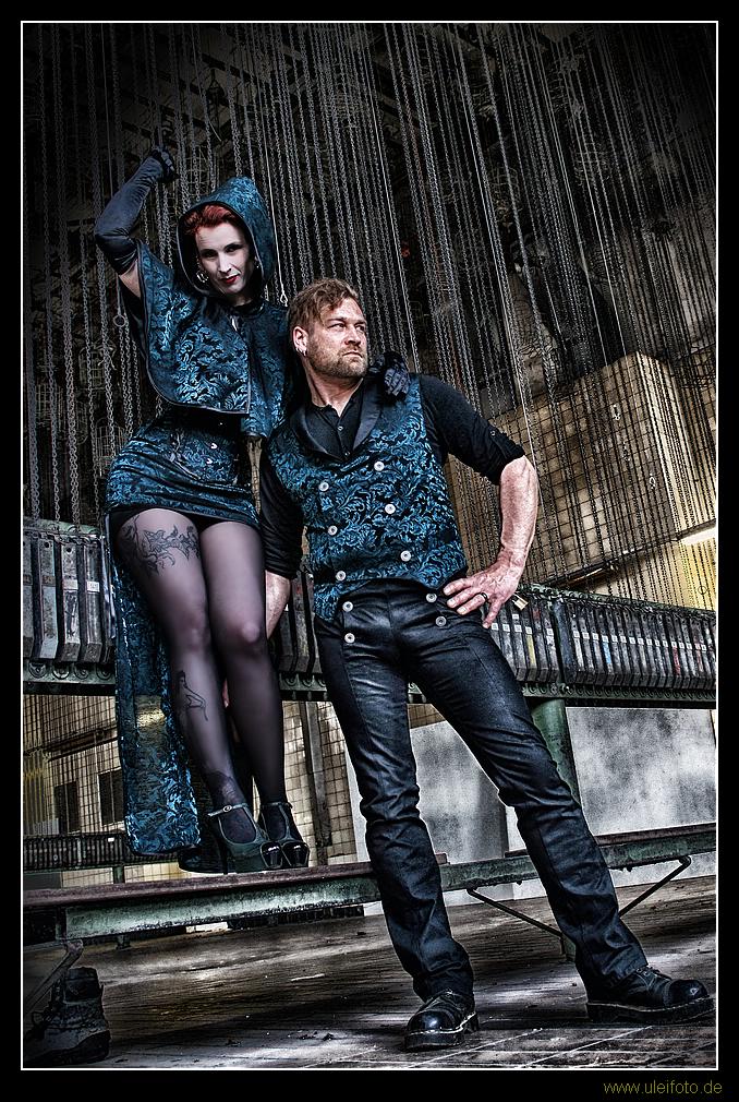Wenn man hereinkommt steht man in einem kleineren, aber sehr gemütlichen Raum. Er ist nicht riesig, aber das macht nichts. Dafür ist der Laden, umso besser sortiert. An jeder wand oder Ecke befindet sich eine bestimmte Kategorie. So kann man beispielsweise gezielt nach Korsetts, Kleidern, Colliers, Mode für Männer und ähnlichem schauen. Ich war überrascht so viel dort zu entdecken. Aber auf den zweiten Blick fand ich immer mehr Kleinigkeiten und Anziehsachen die beim Stöbern mein Aufsehen erregten. Besonders schön waren die Sets im Schaufenster, die Korsagen mit Kragen und die Kleider. Wobei ich vermutlich am liebsten von allem etwas mitgenommen hätte. Am meisten begeisterte mich der Raum hinter der Kasse. Natürlich ist der nur für die Mädels des Personals, aber dort befindet sich die hauseigene Werkstatt. Ich finde, dass wirklich faszinierend zu wissen das dort in diesem Raum all diese wunderschönen Kunstwerke entstanden sind. Per Hand und ganz individuell und bei Bedarf auf Maß angefertigt. Hier bleibt kein Wusch offen, da man einfach bei Nachfrage auch Änderungen vornehmen lassen kann. So wurde mein erwähltes Kleid auch extra für mich angefertigt (ich hatte mir nämlich eine bestimmte Kettenfarbe gewünscht). Hier ein paar modische Beispiele: