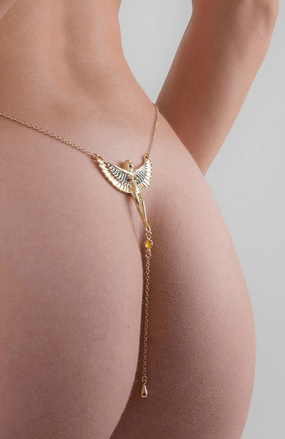 Die Göttin Isis atmet auf der Düne Ihres Geschlechts, umarmt es mit Leidenschaft. Skarabäen aus Gold oder Silber zieren Ihre Brustwarzen, schwanken auf Ihren Hüften, gleiten Ihre Taille hinab. Schmuckstücke mit Hieroglyphen, Botschaften der Liebe, betören im Verborgenen die Hau. Kobras richten sich auf Ihrem Penis auf. Goldene oder silberne Flüsse folgen dem Fließen Ihrer Begierden. Für Weihnachten 2020 hat Sylvie göttlichen, gewagten Schmuck kreiert. Die neue Kollektion ist ein heiliger Fluss, majestätisch und aufreizend, der sich dem Hauch des Vergnügens hingibt.„