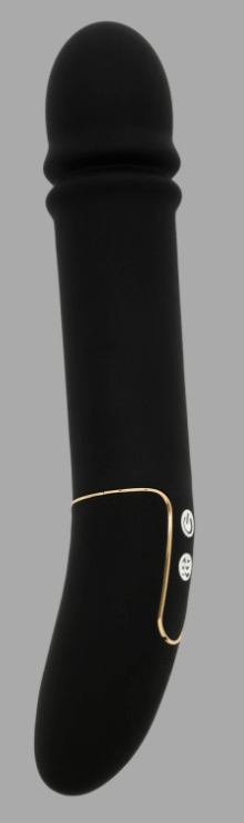 Der Pulse One hat anfangs einen leichten Produktionsgeruch, welcher aber schon nach dem ersten Reinigen verfliegt. Was mir besonders gefällt ist sein unglaublich angenehm samtiges Silikon. Zwar sieht man leicht eine Naht, jedoch ist sie kaum spürbar und sehr gut verarbeitet. Zudem liebe ich die Form. Da der Schaft, wo er gehalten wird und sich das Bedienfeld befindet leicht gebogen ist, liegt er perfekt in der Hand, um ihn extern bei jemand anderem zu benutzen. Auch das etwas schwere Gewicht gefällt mir dabei sehr und es gibt mir das Gefühl von Stabilität und Stärke. An sich ist der Pulse One sehr steif, jedoch lässt sich oben am Kopf, das Silikon leicht eindrücken. Allerdings solltet ihr da nicht zu doll drücken, da sich dahinter die Technik zum Vorstoßen verbirgt. Ich denke zwar nicht, dass man dort so schnell etwas kaputt machen kann, aber darauf anlegen möchte ich es auch nicht. Dennoch fühlt es sich ganz lustig an, dass zwischen Kopf und dem steifen Korpus eine kleine Lücke ist, wo sich das Silikon nach innen drücken lässt. Am unterem Ende befindet sich das Löchlein fürs Aufladen, schade jedoch ist hier, dass es nicht verdeckt ist, dafür wurde hier mit ABS ein kleiner goldfarbener Ring herumgezogen. Dieser wiederum passt gut zum Bedienfeld, da dort ebenfalls eine goldene Markierung um den Pulse gezogen wurde.