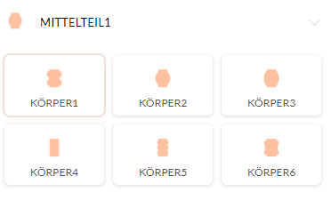 Daraufhin folgen zwei Mittelteile. Das erste bietet euch sechs verschiedene Formen. Von bauchig, rund, glatt oder auch wellig ist alles mit dabei. Ähnlich ist es auch bei dem zweiten Mittelteil. Ihr könnt wieder aus drei Formen wählen. Diese sind leicht unterschiedlich. Sie haben an sich die gleichen Formen, sind jedoch in die Länge gestreckt, was ihnen ein ganz anderes Gefühl gibt.