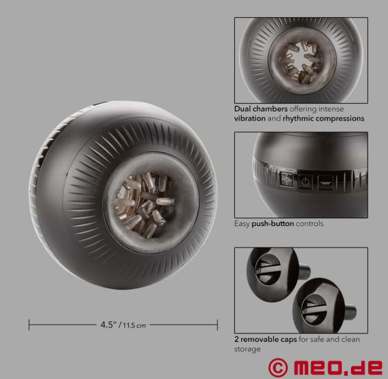 Der Masturball lässt Männerherzen höherschlagen. Er stellt nämlich einen neuen Schritt in die Richtung von futuristischen Masturbatoren dar und hat dabei Hightech-Komponenten, die einfach ein neues Gefühl im Vergleich zu standardisierten Flesh-Lights ermöglichen. Im ersten Moment wirkt er etwas merkwürdig vom Design, wenn ihr ihn aus seiner Verpackung herausholt. Aber wieso nicht mal etwas Neues wagen? Übrigens kommt er mit einem USB-Ladekabel und ist nach knapp 2,5 Stunden fertig geladen und dann für etwas mehr als eine Stunde einsatzbereit. Durch das absolut runde Design lässt er sich leicht halten mit beiden Händen, ist leicht zu drehen, für ein spannendes Gefühl und lässt sich auch noch einfach dabei bedienen. Anfangs habe ich nicht schlecht geguckt, da der Masturbator tatsächlich komplett geschlossen ist, denn er besitzt zwei magnetische Schutzkappen, damit er nicht offen herum liegt und gut geschützt wird. Die Kappen könnt ihr ganz einfach abnehmen. Das Innere besteht aus einem sehr weichen und flexiblen Material namens PureSkin, was jedoch trotzdem mit Gleitgel genutzt werden sollte. Da euer Masturball wasserdicht ist, könnt ihr ihn anschließend einfach mit abgenommenen Kappen unter lauwarmes Wasser halten und mit den Fingern noch die Noppen innen etwas reinigen. Auch milde Seife stellt hier für die Reinlichkeit eine gute Option dar. Ein direktes Oben und Unten gibt es nicht. Der eine Eingang hat flexible Noppen und die andere Öffnung ist dick gerippt, sodass ihr euch aussuchen könnt, wonach euch in dem Moment eher ist. Dieser „Love Tunnel“ sorgt bei Bewegung für aufregende Abwechslung beim Masturbieren, aber glaubt uns, das war noch lange nicht alles
